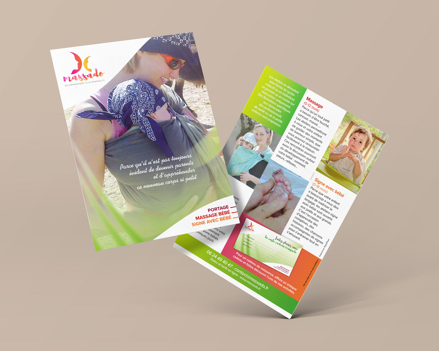 Création de l'identité visuelle de l'association grenobloise d'accompagnement à la parentalité. Réalisation de différentes déclinaisons dont le site web : www.massado.fr